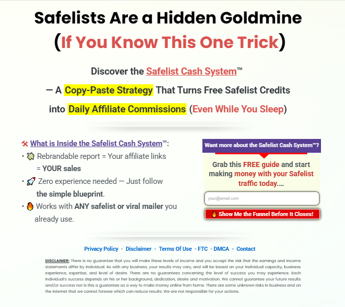 The “Safelist Cash System” works by turning simple safelists into a consistent source of traffic and daily leads through a clear, repeatable method. Instead of relying on paid ads or complex setups, you’ll learn how to use existing traffic platforms where users are already active.
