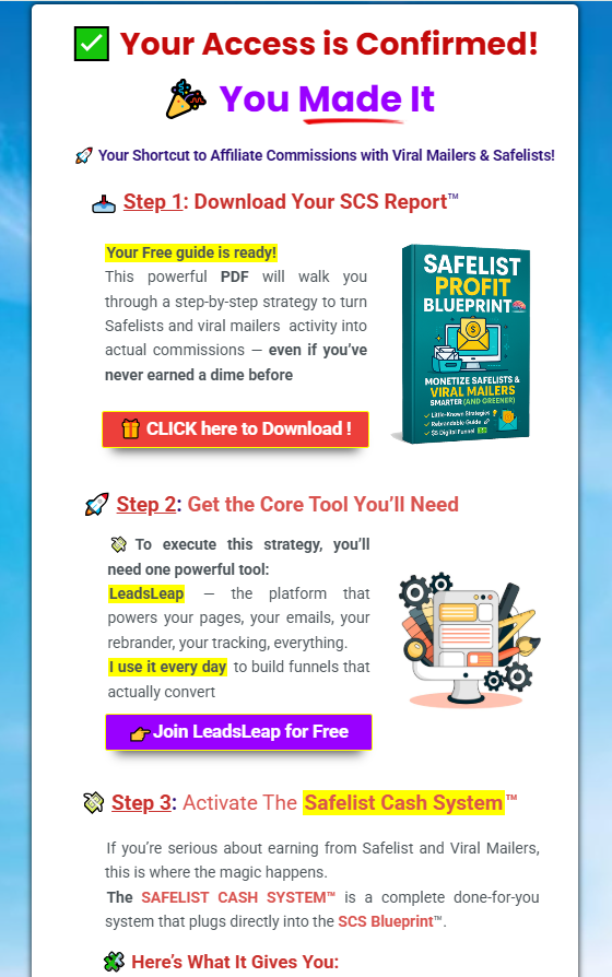 If you’re someone who wants a simple system, clear guidance, and a practical way to start generating leads, the “Safelist Cash System” is definitely worth considering.