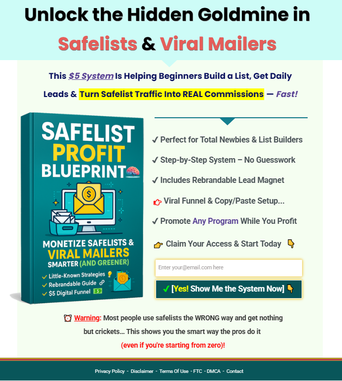 Discover how to turn simple safelists into a powerful traffic and lead generation machine even if you’re starting from scratch. The “Safelist Cash System” reveals a clear, step-by-step method to generate consistent visitors, capture leads, and grow your email list without relying on paid ads or complicated tools.